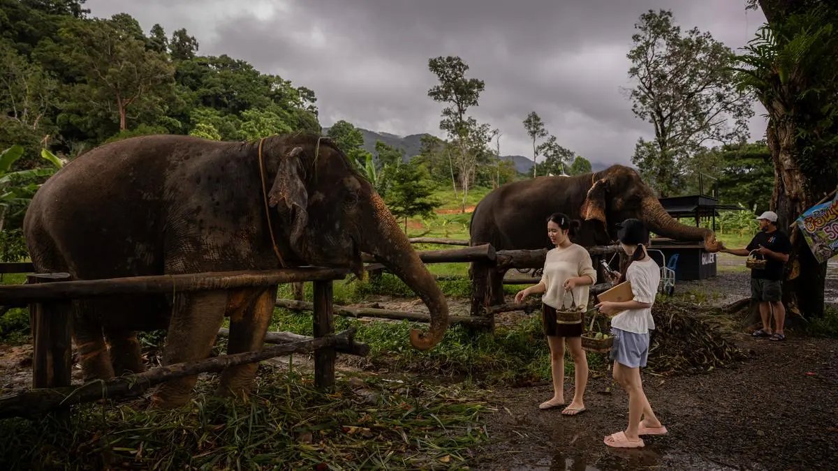 KOH CHANG, THAILAND – Tourists feed elephants on the side of the road on June 09, 2025 in Koh Chang, Thailand. Koh Chang, which means “Elephant Island” in Thai, was recently ranked the world’s second-best island by Travel + Leisure. Koh Chang is known for its waterfalls, beaches and marine life. The island placed just behind the Maldives and ahead of islands like Bali and Maui